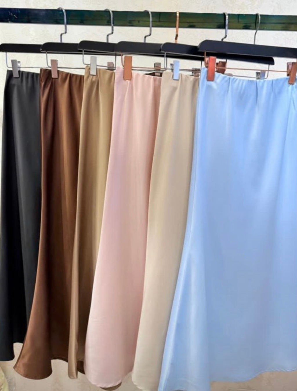 A saia midi em cetim é aquela peça que eleva qualquer produção com leveza, elegância e presença. Com caimento fluido e toque acetinado, ela desliza pelo corpo valorizando a silhueta de forma sutil e feminina.