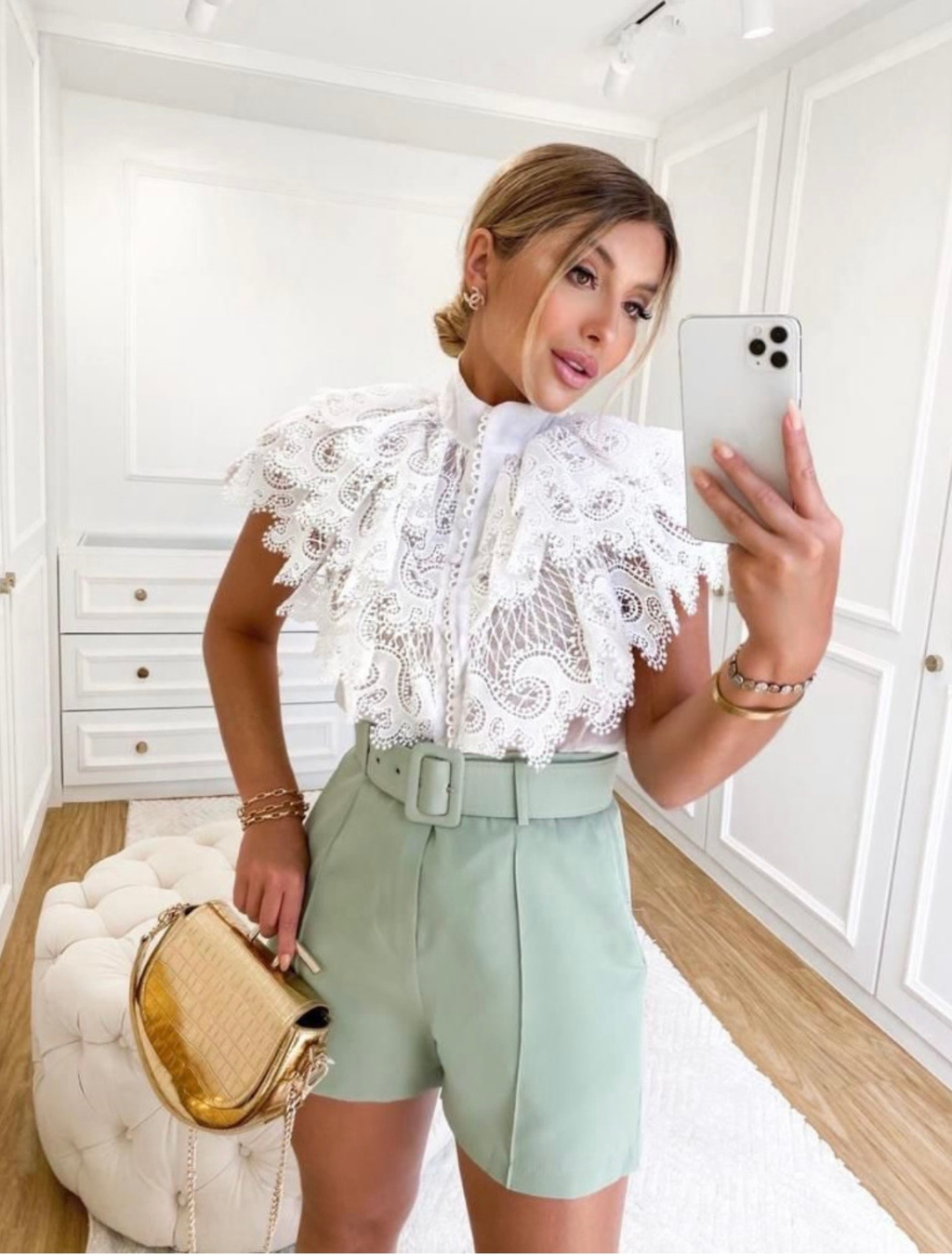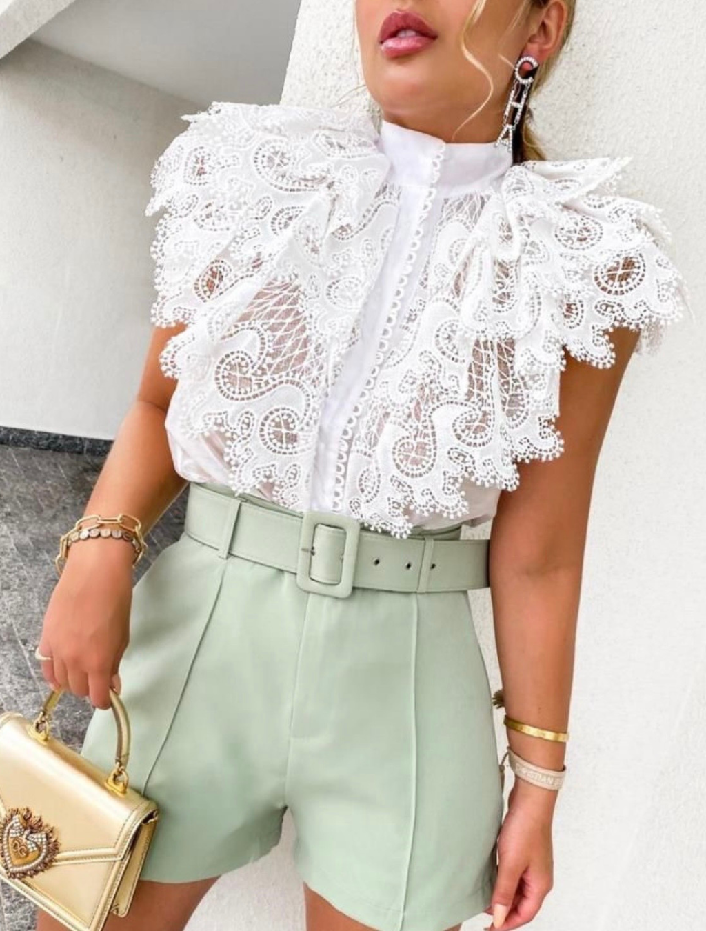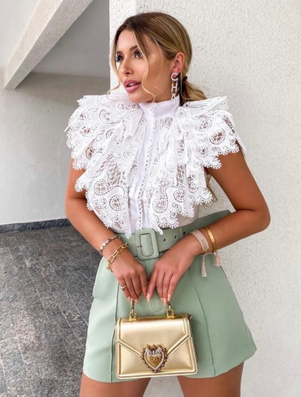 Delicada e sofisticada, essa blusa em renda traz um toque de elegância atemporal para qualquer produção. Com gola alta e acabamento em renda trabalhada, ela valoriza o colo e cria um visual refinado e feminino. A transparência sutil da renda adiciona charme e leveza, tornando a peça perfeita para composições elegantes, do casual chic ao look mais sofisticado.