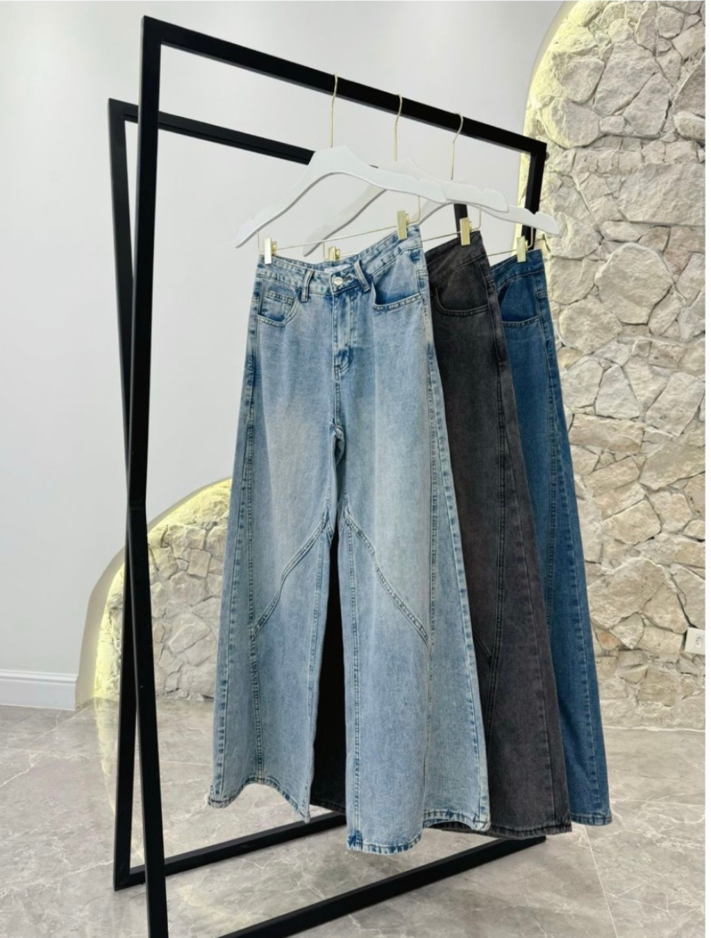 A calça jeans pantalona é a escolha perfeita para quem busca elegância com conforto. Com modelagem ampla e caimento fluido, ela alonga a silhueta e traz um toque moderno e sofisticado ao look.