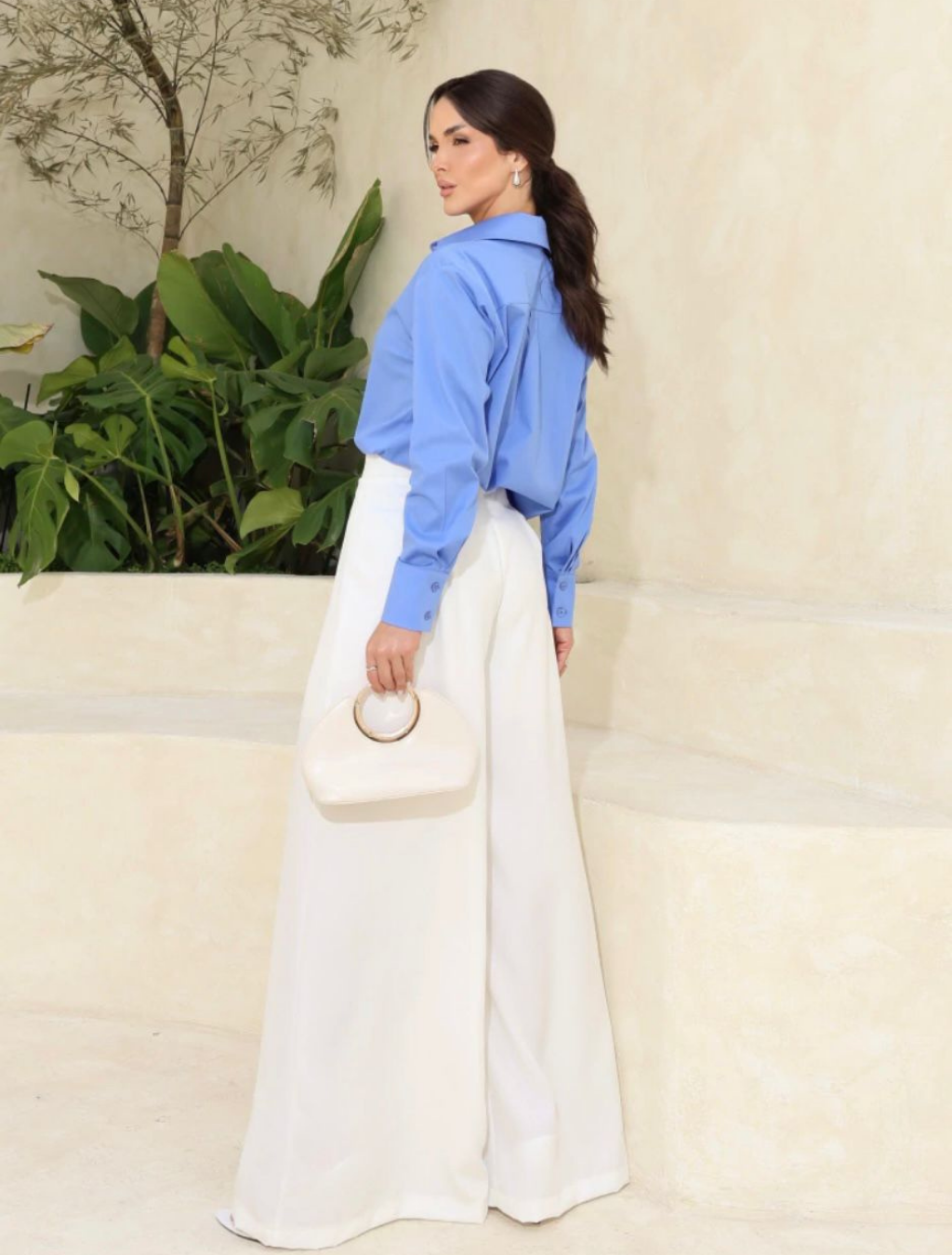 Calça Pantalona — tão ampla que parece uma saia, tão elegante que transforma qualquer look.