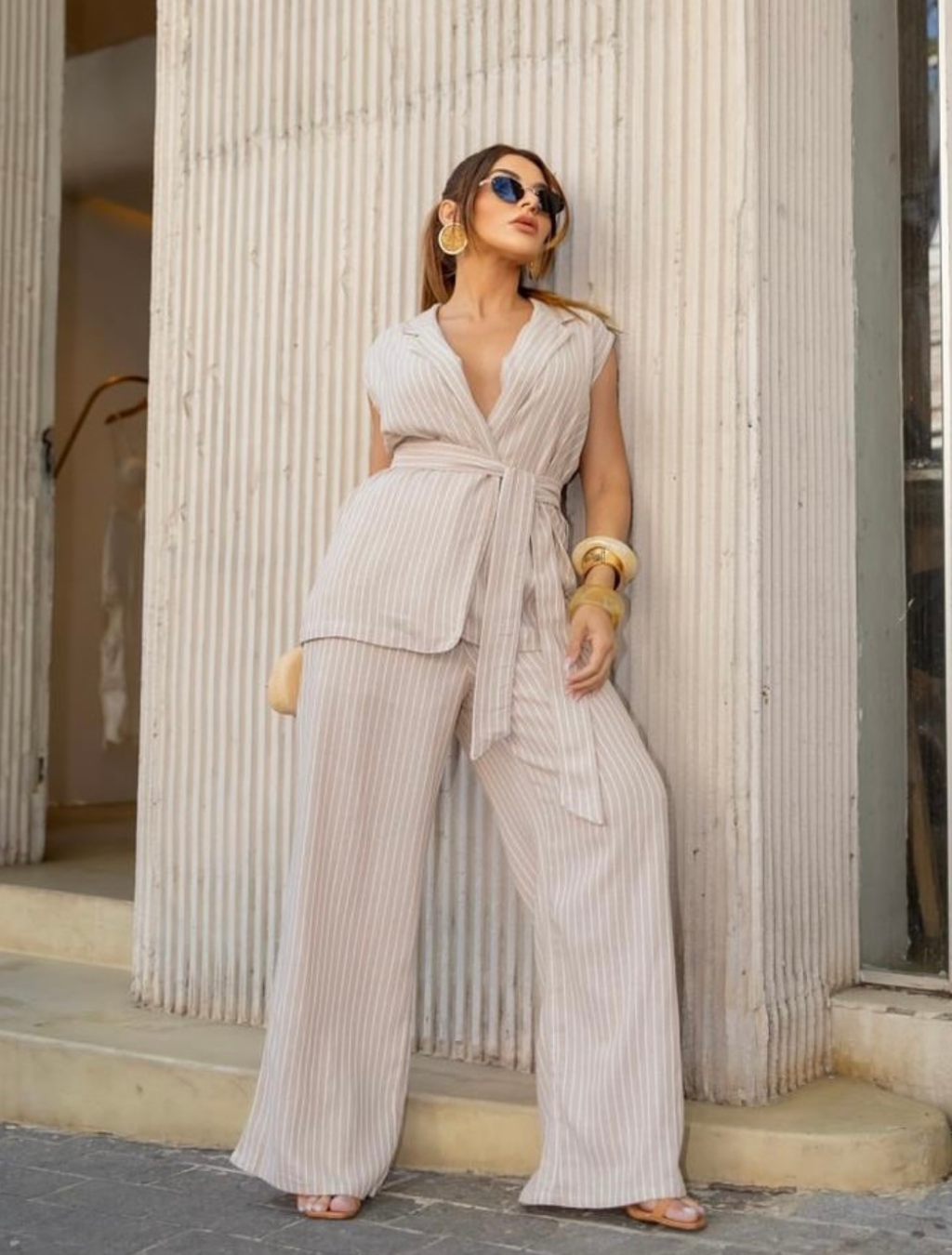 sinônimo de elegância moderna! O colete traz um toque de alfaiataria refinado, enquanto a calça pantalona valoriza a silhueta com caimento impecável. Um look sofisticado e atemporal, perfeito para quem ama unir estilo e conforto em uma produção marcante.