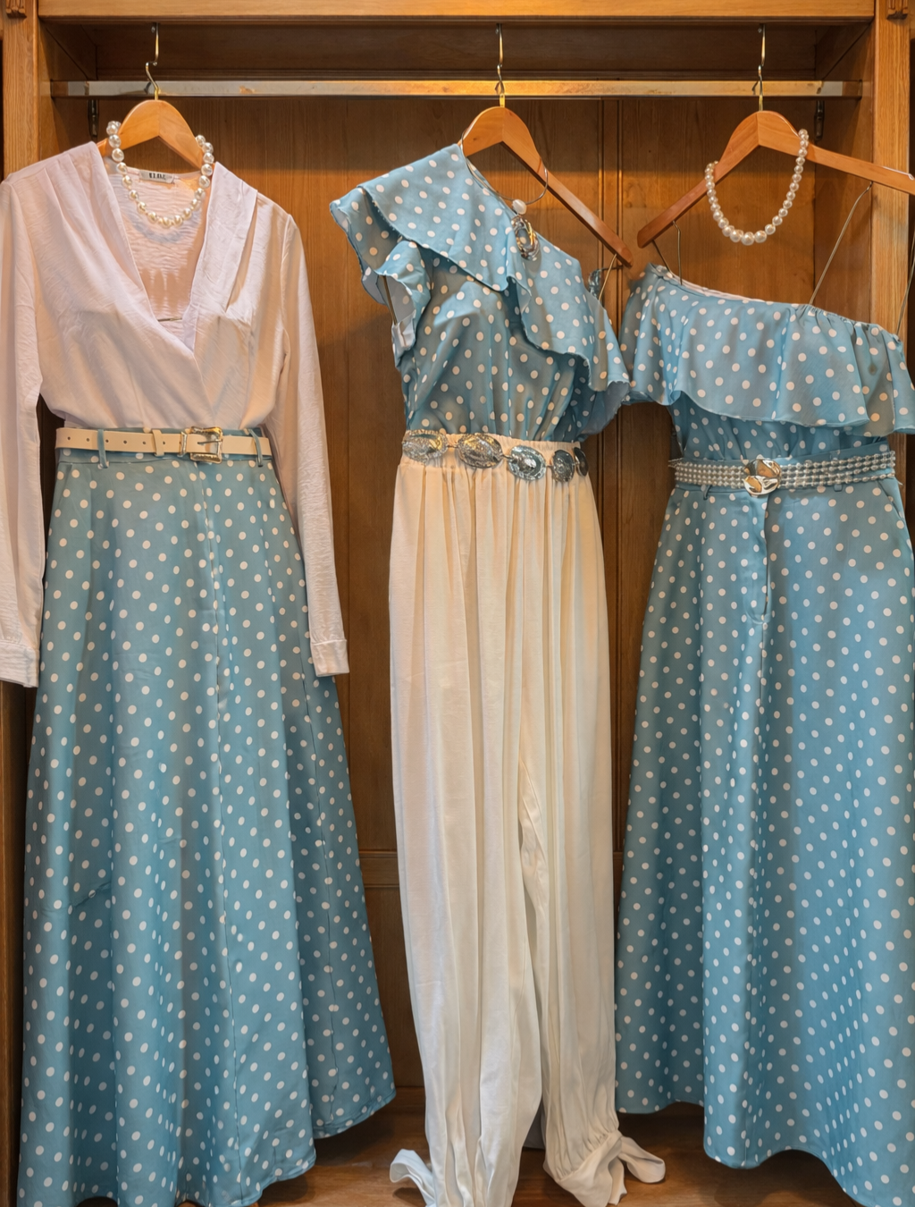 O conjunto de saia midi em poá com cropped de babado é a combinação perfeita entre elegância e romantismo.