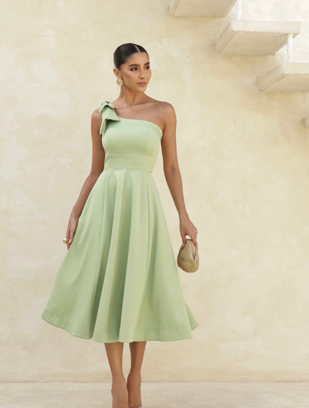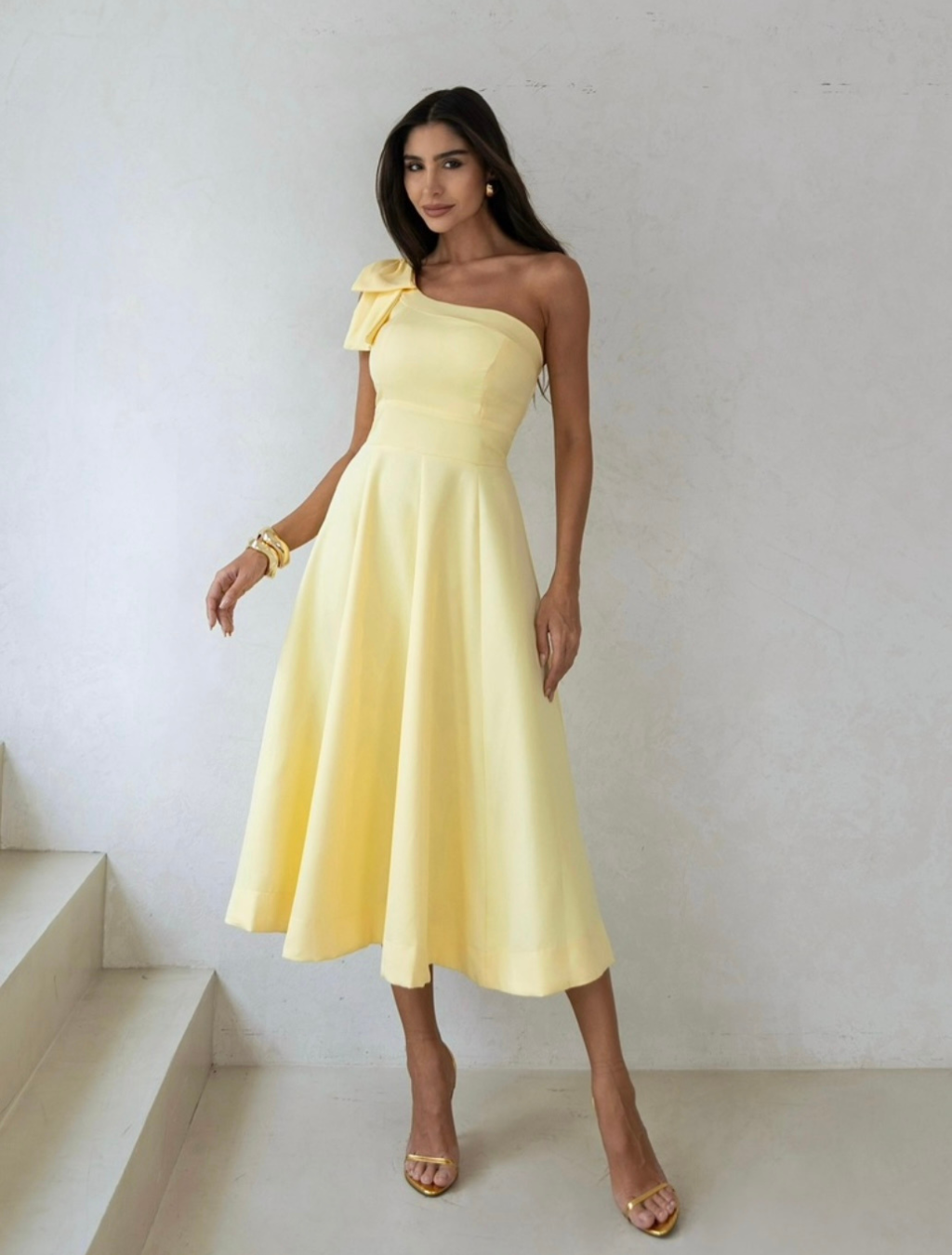 Um verdadeiro sonho em forma de vestido. Confeccionado em alfaiataria premium, este modelo traz a combinação perfeita entre estrutura e feminilidade. Sua saia godê confere movimento impecável e um caimento que remete ao charme clássico das princesas.