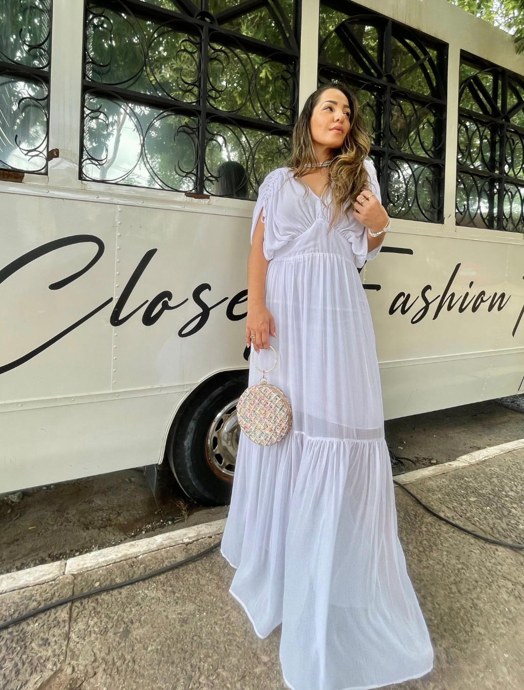 As mangas franzidas adicionam um toque na medida certa, criando um visual imponente e romântico, digno de uma verdadeira princesa. Cada detalhe foi pensado para trazer sofisticação extrema, presença e beleza atemporal.