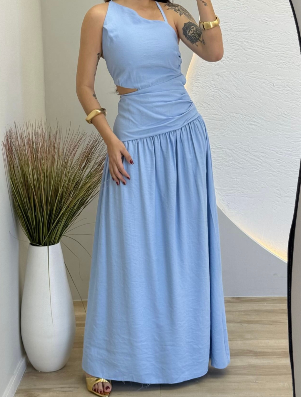 Com recorte frontal assimétrico e costas nuas, esse vestido une sofisticação e ousadia na medida certa. O caimento fluido valoriza as curvas com elegância, enquanto o design moderno transmite poder e feminilidade. Um look perfeito para quem quer se destacar com estilo !