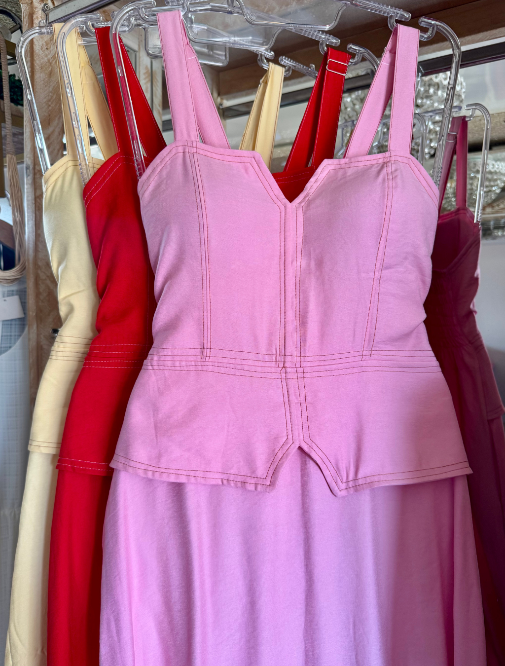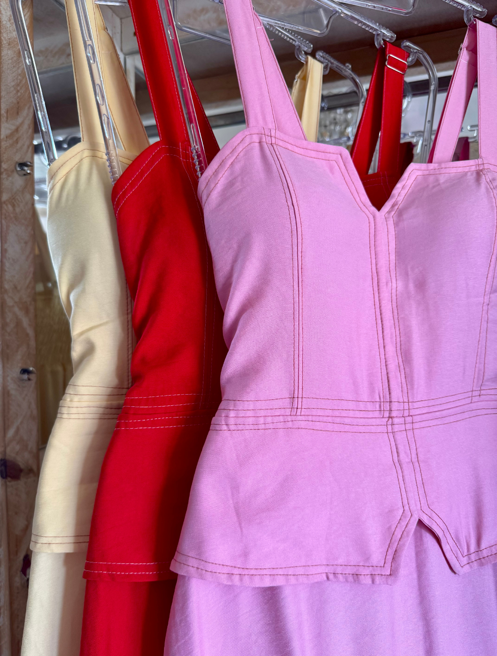 Com modelagem que imita perfeitamente o combo blusa + saia, este vestido godê traz um design moderno e extremamente feminino. As costuras pespontadas destacam a estrutura da peça, garantindo um acabamento impecável e ainda mais sofisticação.